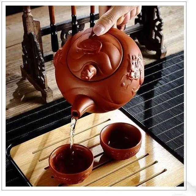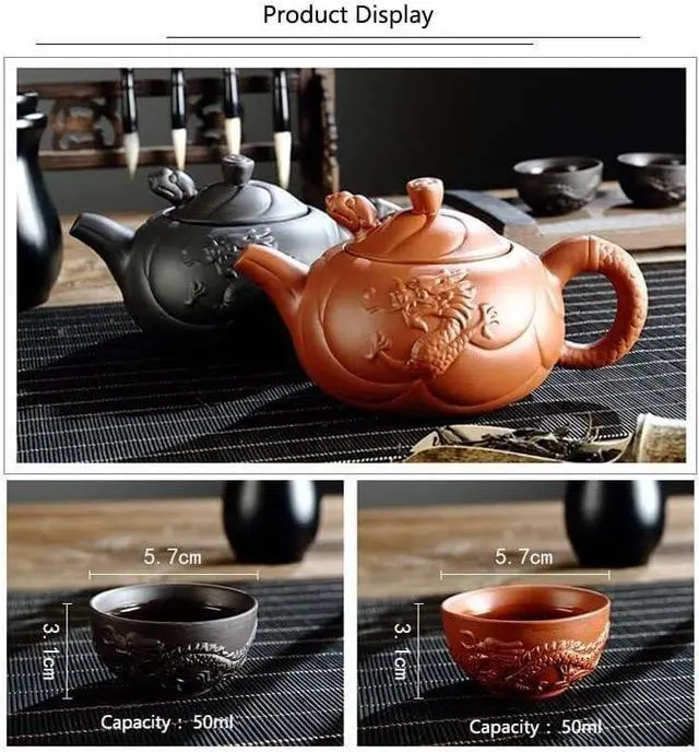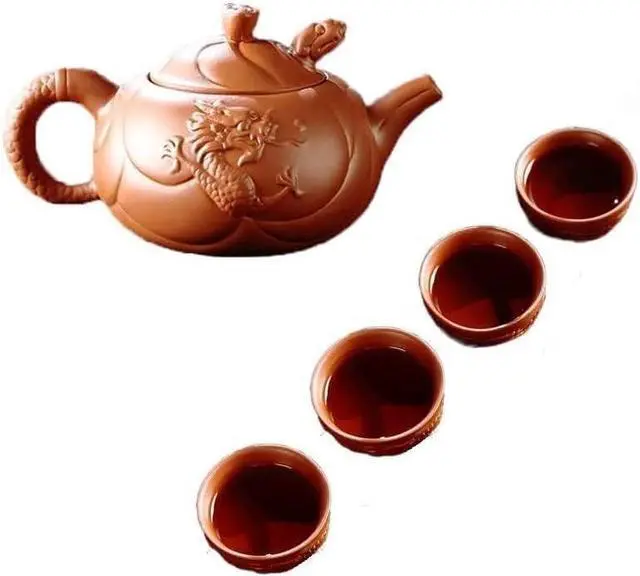 Authentic Chinese Craftsmanship: This handmade purple sand tea set features a ceramic teapot and 4 tea cups, showcasing traditional Chinese craftsmanship and elegance.