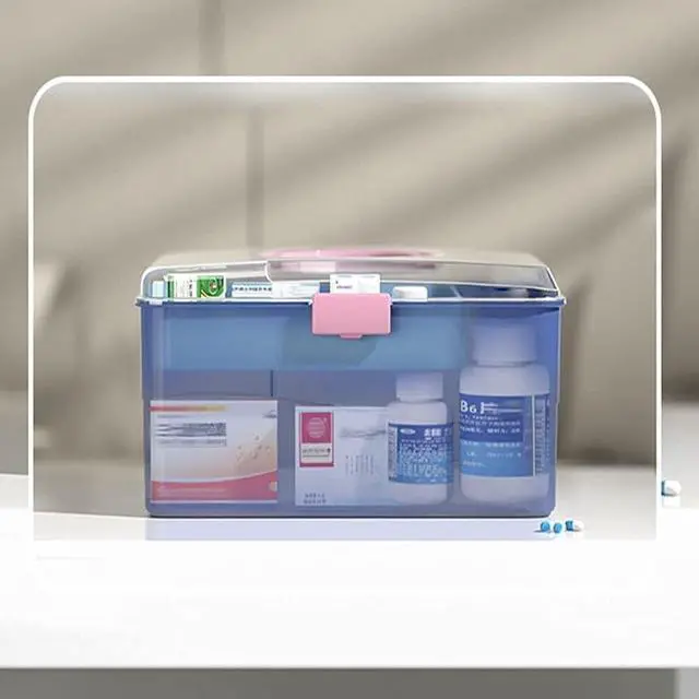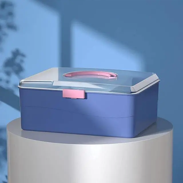 Large Medicine Storage Box First Aid Organizer, Plastic Medication Storage Box, Blue, Empty, One Size(Grau) (Blue)