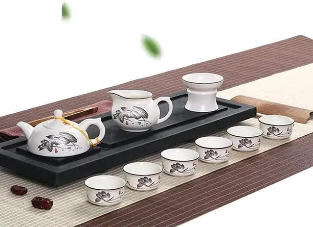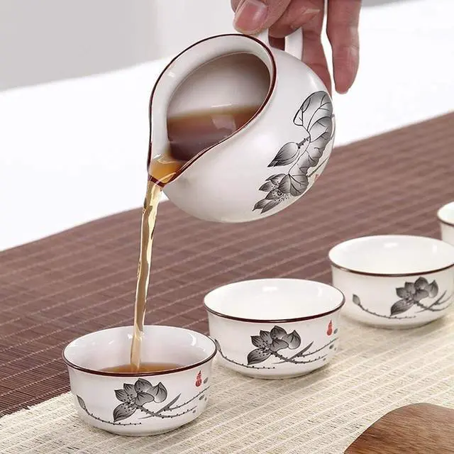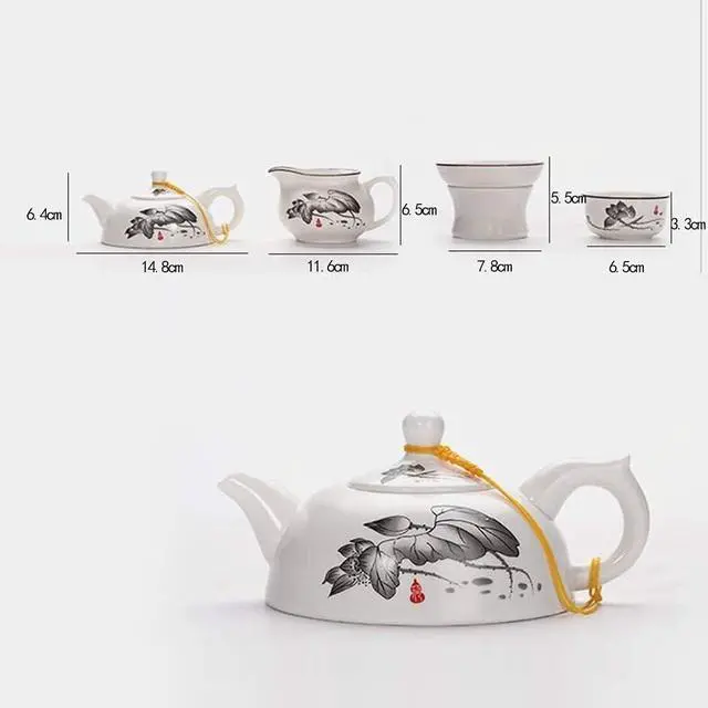 : Includes a ceramic teapot, fair cup, and tea cups, designed for traditional tea ceremonies.