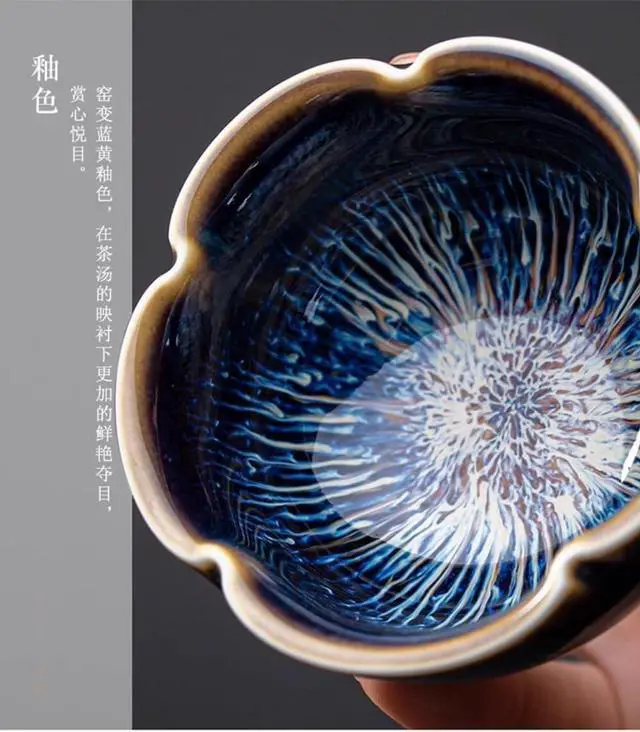: This 100ml tea cup features a petal-shaped design, perfect for tea ceremonies and tea tastings.