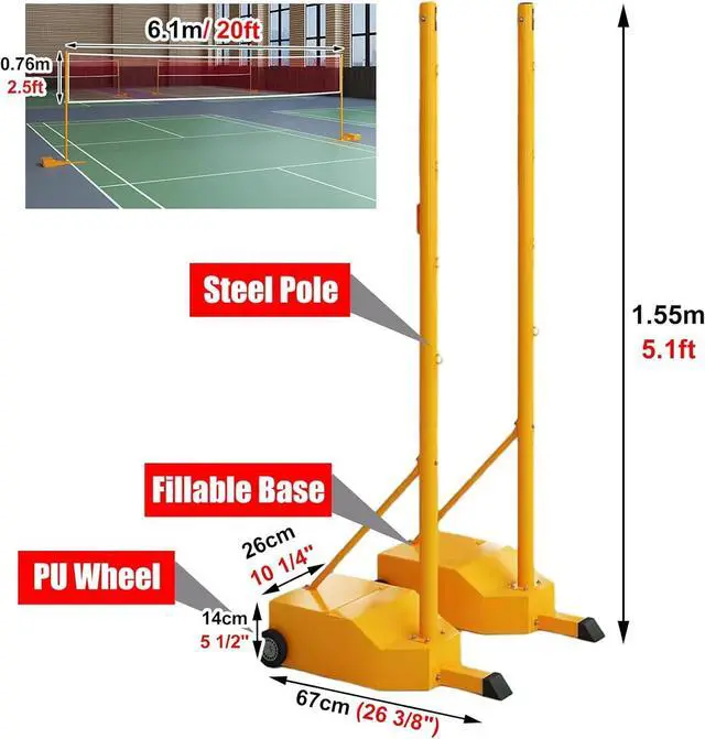 ?? Sturdy Frame The main body of this outdoor badminton poles is designed with thick steel plate, the net has tough steel wire passing through, which is not easy to deform when pulled. So our product survives the abuse of the hardest shots season after season.