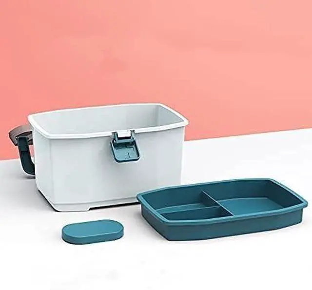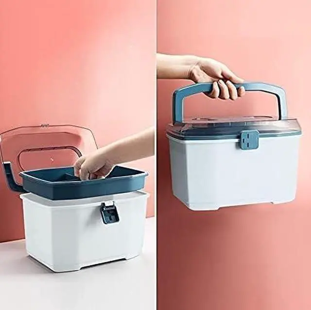 Multi-Layer Medicine Storage Box with Lock Portable Family First Aid Organizer for Home & Outdoor Use (Blue Medium)