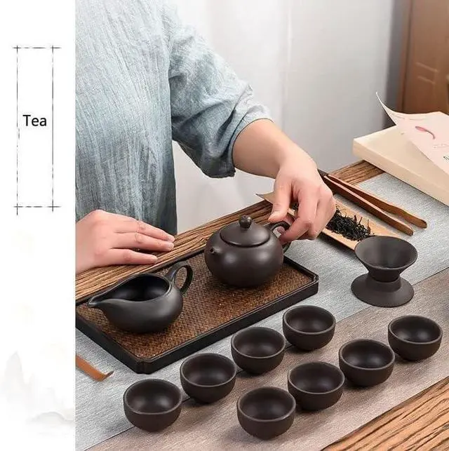 Elegant Handmade Design: This Chinese tea set is meticulously handcrafted from purple clay, offering a unique, elegant tic perfect for tea ceremonies and gatherings.