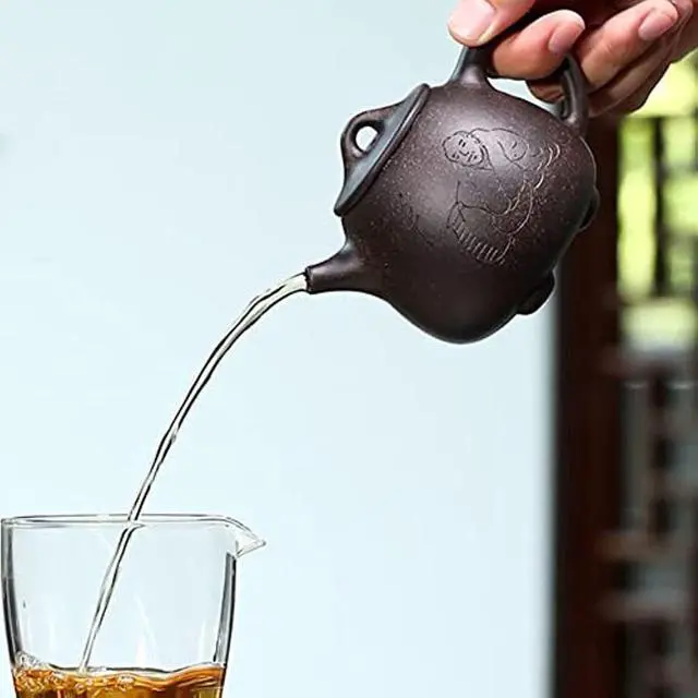 Handmade Purple Clay Teapot Crafted from raw ore black gold sand, this teapot becomes beautifully shiny and over time. Ideal for Various Teas Perfect for brewing green tea, black tea, oolong, Tieguanyin, Longjing, Biluochun, and scented teas, preserving their true aroma and flavor. Portable and Compact Design With