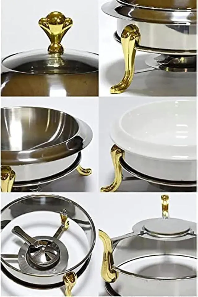 Elegant Gold & Silver Finish The highly polished mirror finish gleams beautifully under ambient lighting, adding a touch of elegance to any buffet, party, or event.