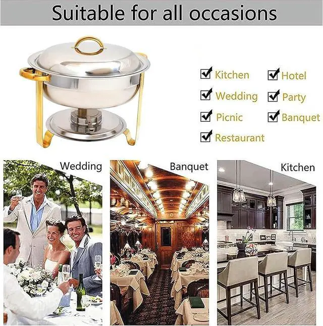 Any Event: Featuring a sleek, modern round design, this buffet warmer is perfect for weddings, banquets, parties, or any catering event, offering both style and