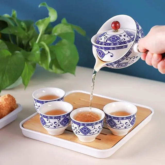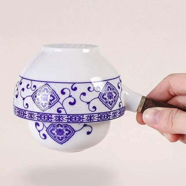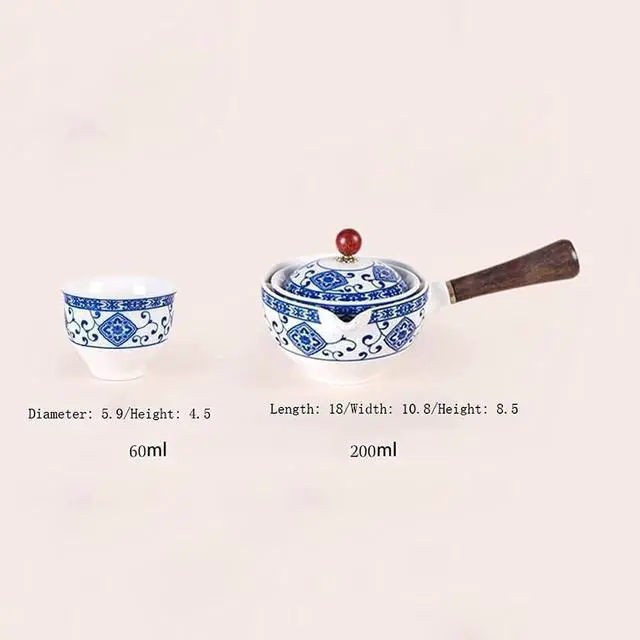 Elegant Design This ceramic teapot set features a modern white pattern with a wooden handle, offering a sleek and sophisticated look perfect for any setting. Compact & Convenient Designed with stackable storage, this tea set is space-saving and portable, making it easy to store and carry, ideal for home, office, or travel. Craftsmanship Made from ceramic, this tea set features a smooth glaze, showcasing traditional Chin
