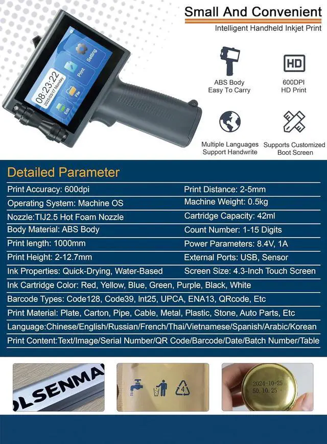 Print Anywhere, Any Surface: Achieve high-resolution performance with 300, 400, and 600 DPI. From carton boxes to metal boards, wood, glass, and even curved surfaces, our printer adapts to your needs, enhanced by the auxiliary positioning plate.