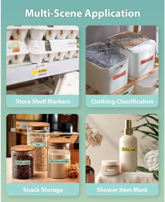 for kitchen pantrys organization , office file sorting, school supply tagging, or crafting personalize stickers for jars, cosmetics, and electronics using customizable templates and code integration.