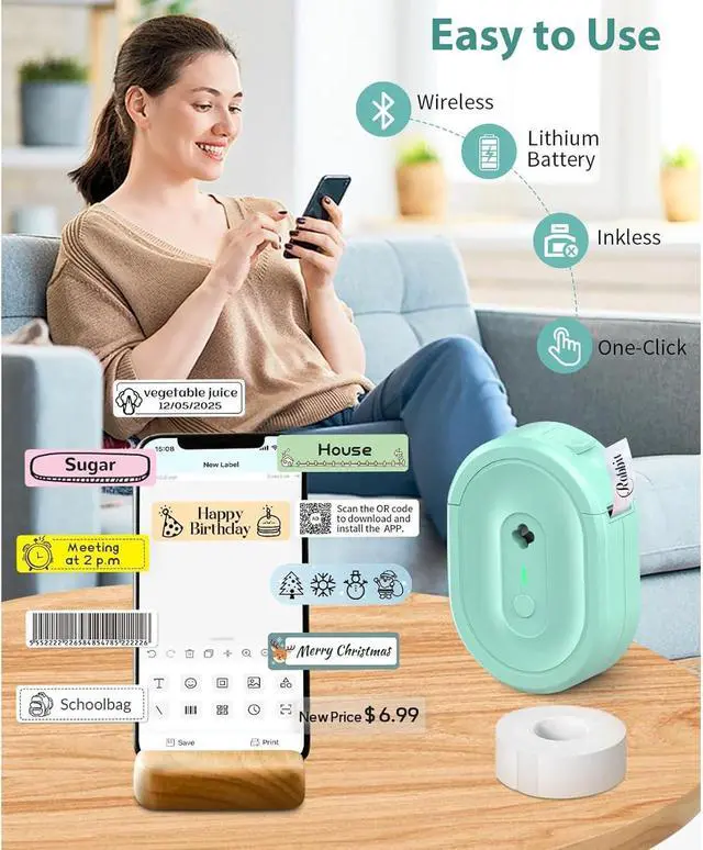 Ideal for busy households, office professional, teachers, and small business owners , this label maker simplifies tasks like jar labeling, cable identification, and inventory management with user friendly connectivities.