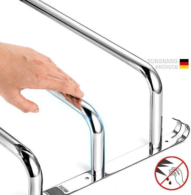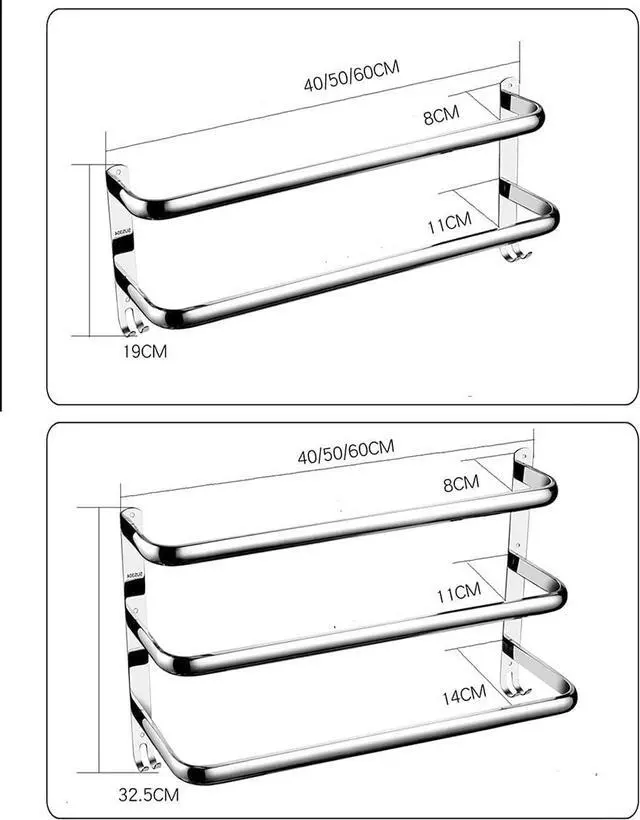 THREE-LAYER TOWEL RAIL High and low three-layer displacement construction not only increases storage capacity, can hang multi-layer towels and bathroom accessories, but also increases the distance from towels, which are breathable and easy to dry l growth. STRONG ENOUGH Wall-mounted structure, The thick fastening bar and anti-lock system make the towel rail stronger and perfect for modern families and hotels to hang and organize your face towel, bath towels and clothes. EASY TO IN