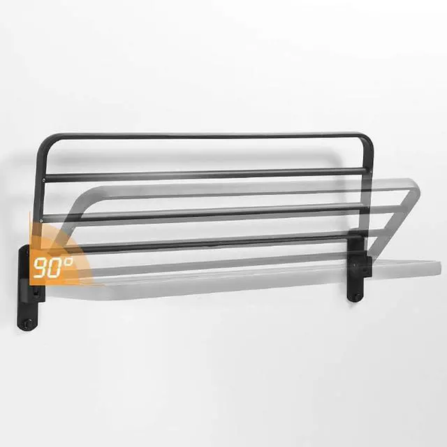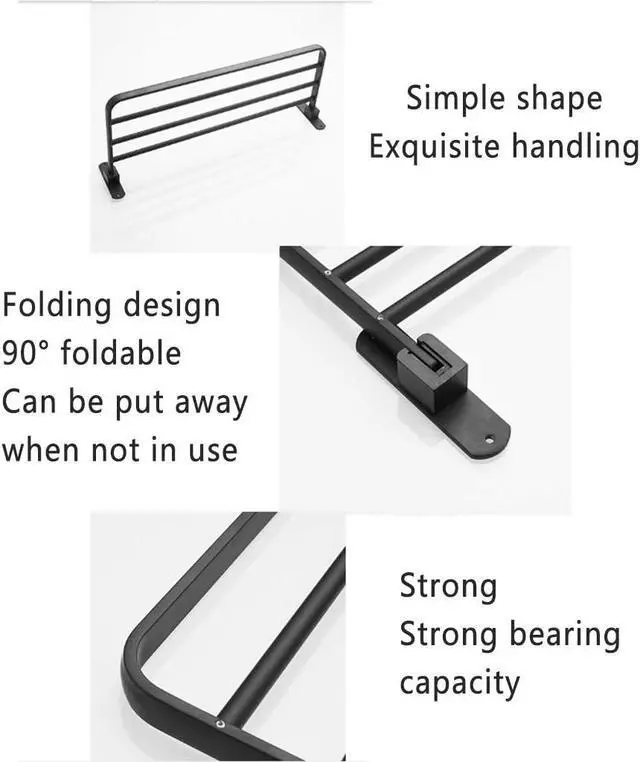 [Convenient and practical design] The shelf can be folded 90°, when you don't need it, you can fold it up[High-quality] Towel rack is made of space aluminum material, which is suitable for humid bathroom environment. It has good corrosion resistance, heat resistance, and rust resistance, no fading, no blackening, fine gloss, easy to clean and wear resistant, healthy and rust-proof.[Dry and clean] The hollow design at the bottom can prevent water from staying on the shelf after showering, ensure ventilation, keep it dry and tidy, and prevent the items on the shelf from breeding .[Safety]Rounded edges and corners, safe to use, no hand injury, care for the health of the family.[Powerful storage capacity] Widen the storage area, you can put more things, convenient and practical, you can put soap, toothbrush cup, facial cleanser, shampoo, etc. at the same time.