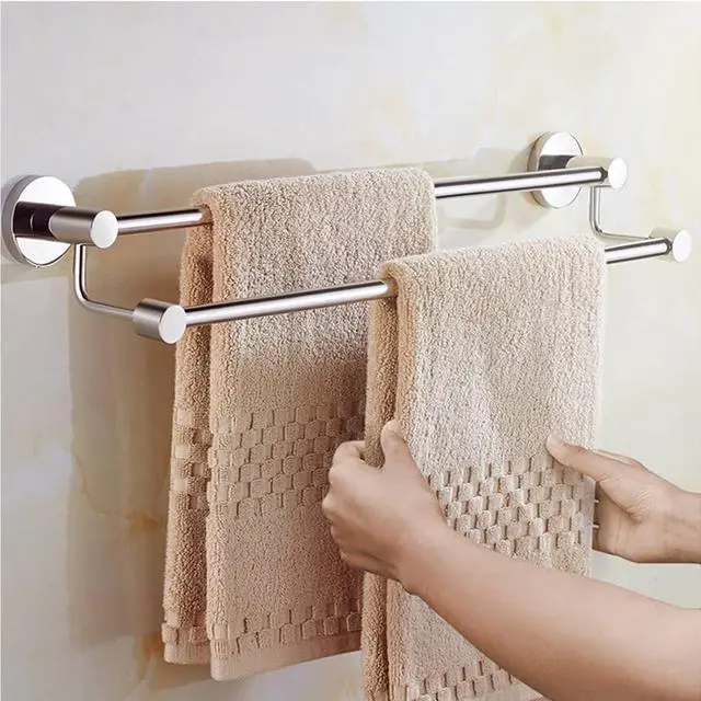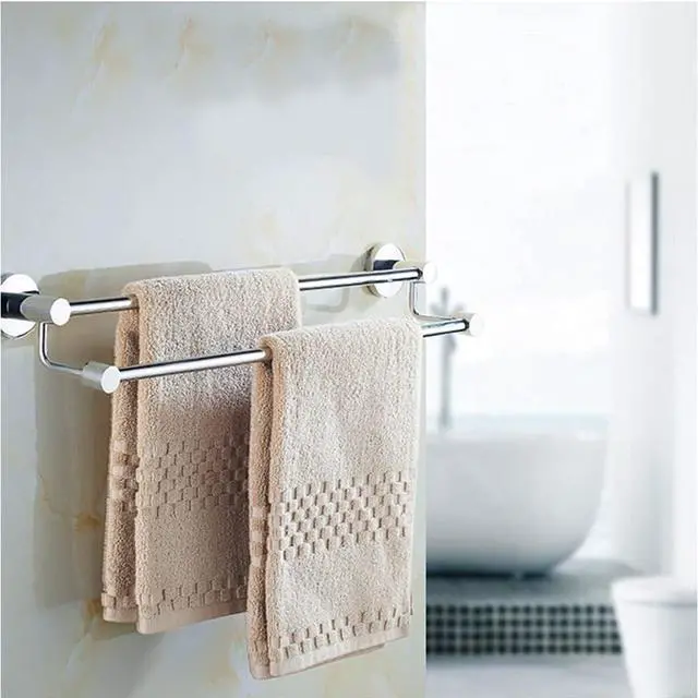 • Stainless Steel double Towel Bar - Made of premium-grade SUS 304 stainless steel, against corrosion and rust, the durable towel bar offers reliable strength and long-lasting good looks.mirror Polished Finish - Our towel bar is mirror Polished Finish, easy to clean, The edges are round and cole, so you don't have to worry about scratching your hands. It can be cleaned by w