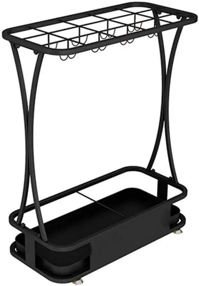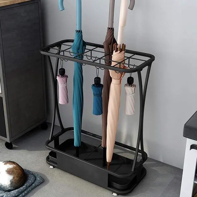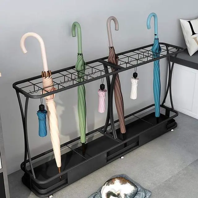 Umbrella Stand Umbrella Stand Commercial, Hotel Bank Iron Umbrella Stand with Hooks and Mobile Drip Tray, 10 Holes 8 Hooks, 5 Colors, (Black)
