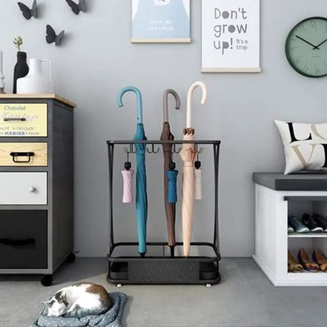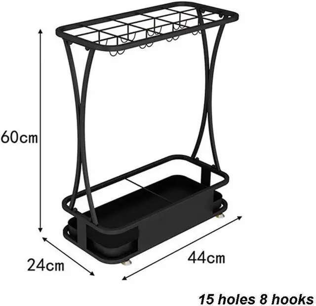 • IDEAL STORAGE SIZE - The umbrella stand measures 44x24x60cm (10 holes 8 hooks), can store more than 5 umbrellas, and the ideal height is perfect for both long and short umbrellas.