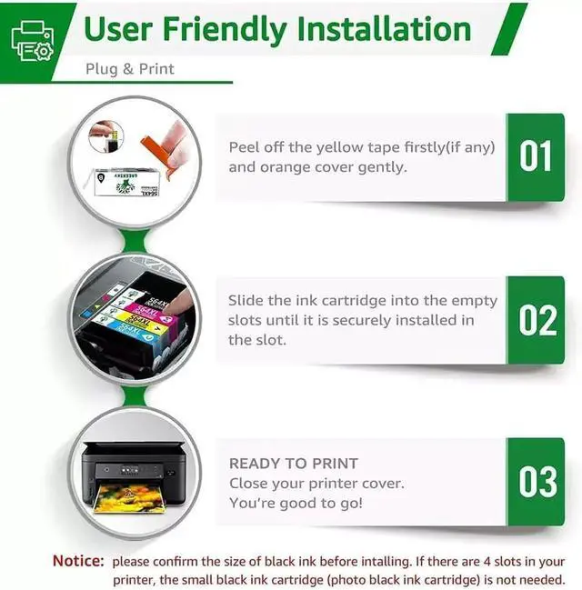 Experience vibrant color printing with the 4PK 564XL Ink Cartridge, compatible with Photosmart 6510, 6520, 7510, 7520, 5520, 5510, and 6525 models. Enjoy page yields with these XL cartridges, designed to produce more prints per cartridge, ensuring you spend less time replacing ink and more time creating. Achieve text and stunning images, making these cartridges ideal for both professional documents and photo prints. Benefit from easy installation, allowing you to replace your cartridges quickly