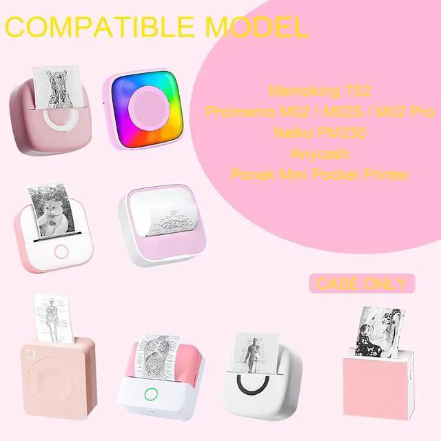 WIDE COMPATIBILITYPERFCAZE sticker printer case fit for Memoking T02, Phomemo M02 / M02S / M02 Pro, Nelko PM230, Anycash, Ponek Mini Pocket Printer and others.