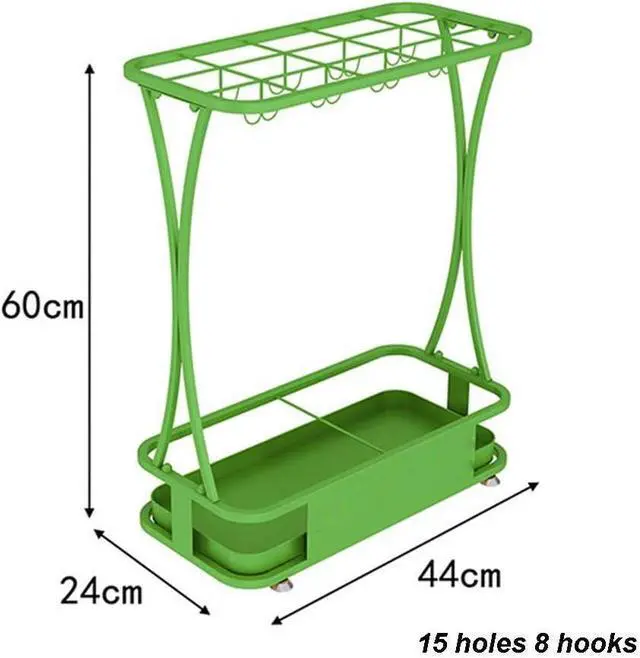 IDEAL STORAGE SIZE - The umbrella stand measures 44x24x60cm (10 holes 8 hooks), can store more than 5 umbrellas, and the ideal height is perfect for both long and short umbrellas.