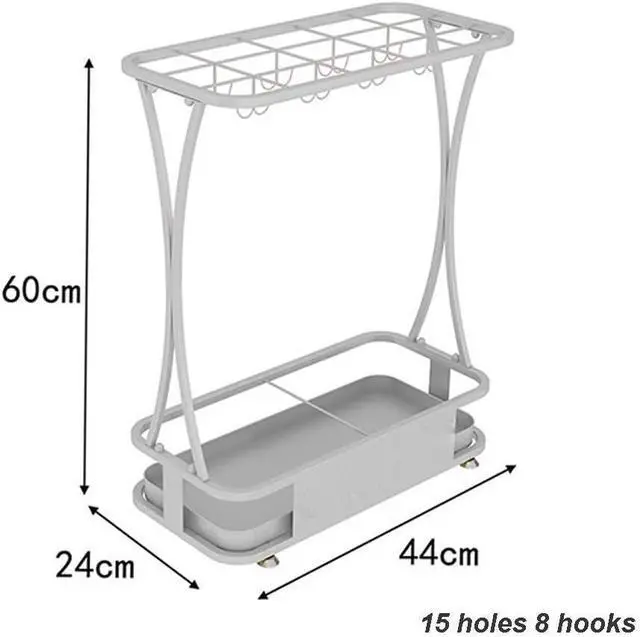 IDEAL STORAGE SIZE - The umbrella stand measures 44x24x60cm (10 holes 8 hooks), can store more than 5 umbrellas, and the ideal height is perfect for both long and short umbrellas.