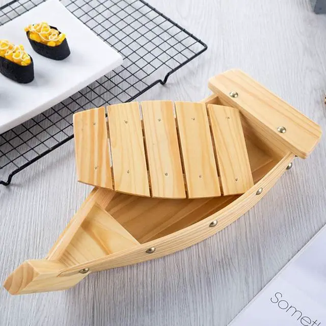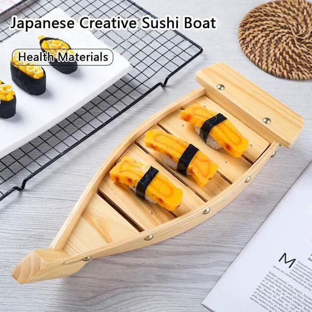 High Quality Sushi Boat: 100% brand new, beautiful shape in Japanese style, hand polished with pine wood, smooth edges, no burrs, safe to use, food grade material, safe and healthy.