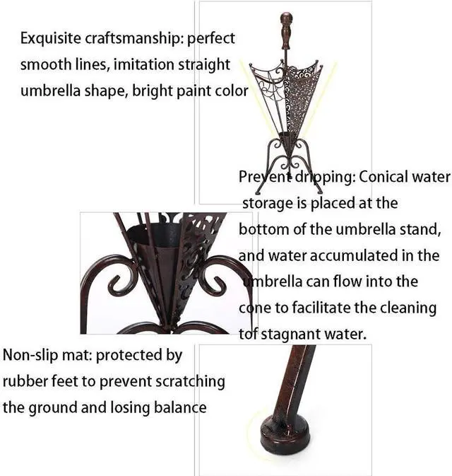 Prevent dripping:Conical water storage is placed at the bottom of the umbrella stand,and water accumulated in the umbrella can flow into the cone to facilitate the cleaning of stagnant water.