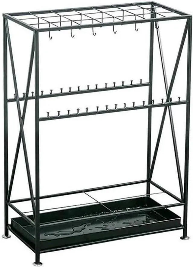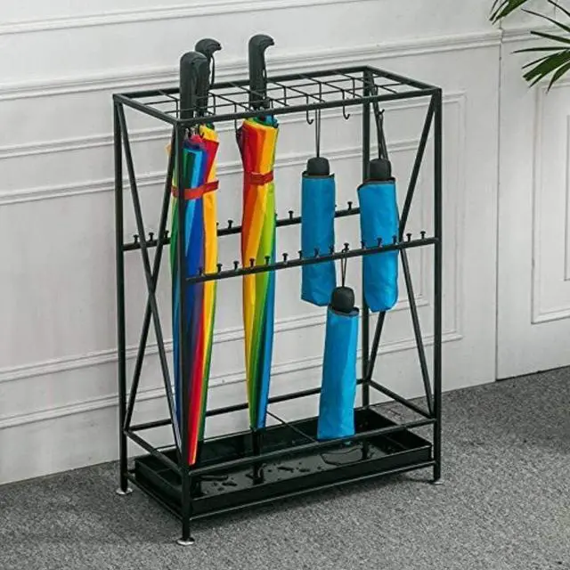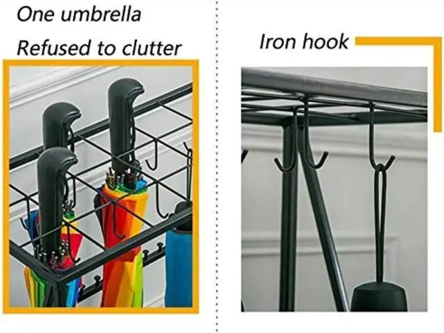 ?[Modern design ]-Comes with a removable plastic drip tray,prevent water flowing out and protect your floors from.The hooks Compatible with hanging folding umbrella
