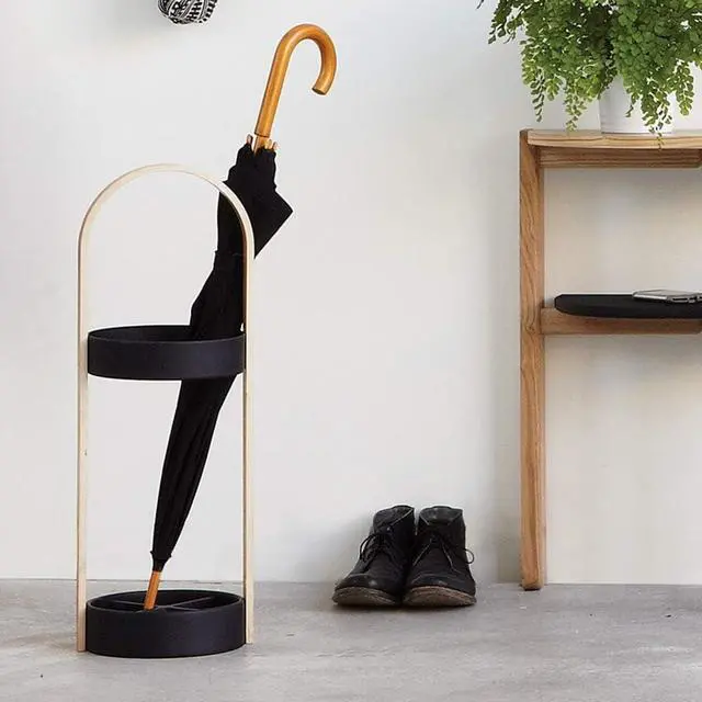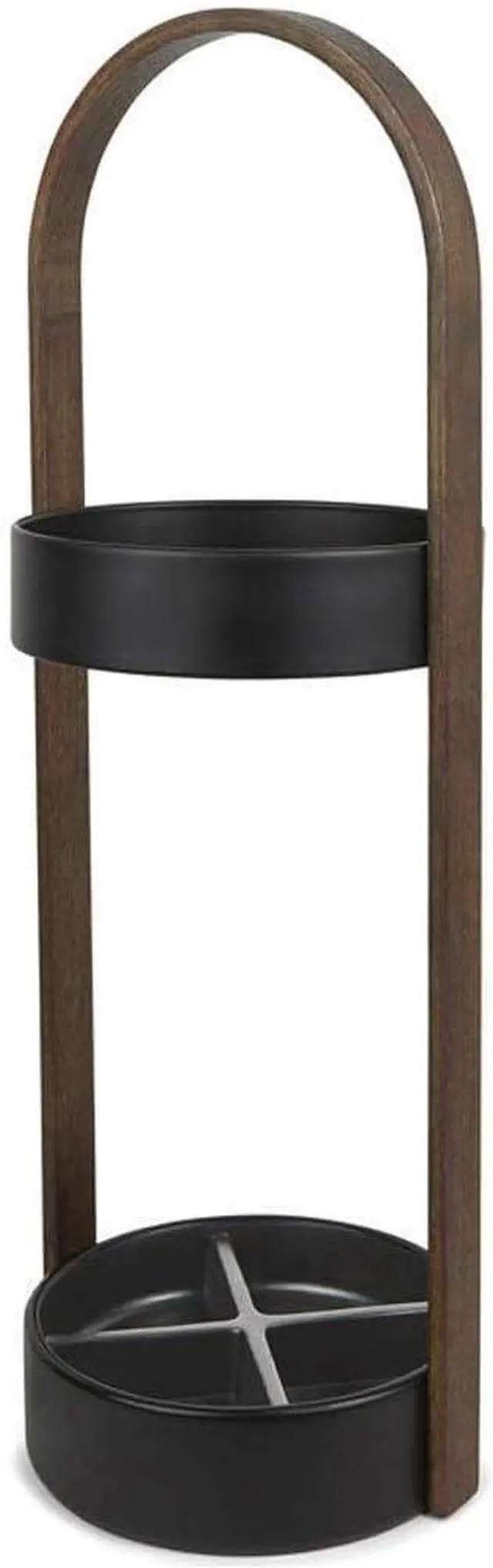 The frame is made of high quality wood. Water resistant resin bottom prevents the umbrella stand from rusting. Fits into multiple spaces with ease