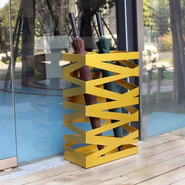 Umbrella Storage Iron Umbrella Stand Office Hotel Corridor can - Mobile M-Type Umbrella Bucket (Golden)