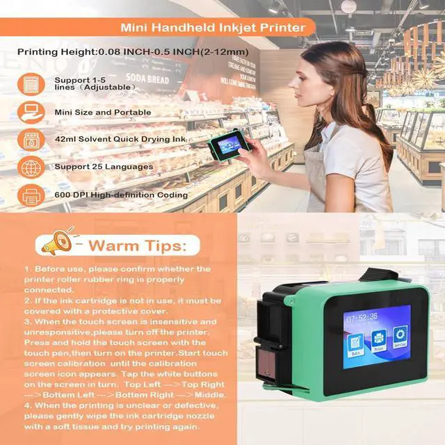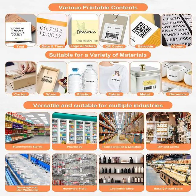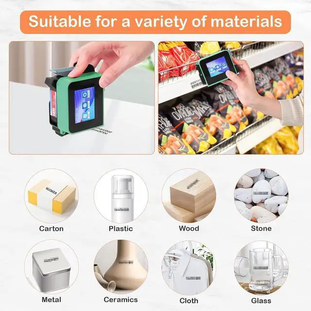 Unlimited Printing PossibilitiesThe mini handheld printer can print text, images, QR codes, barcodes, batch serial numbers, logos, production dates, expiration dates, etc. Supports multi-line printing. Adjust the size and position of your prints and you can easily create different print combinations.