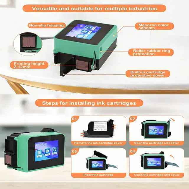42ml solvent quick-drying ink cartridge This handheld inkjet printer comes standard with a black high-definition 42ml quick-drying ink cartridge, which provides clear printing and strong adhesion. The color of the ink cartridge determines the color of the printed content. (Note: Please pay attention to the maintenance of the ink cartridge and cover the protective cover in time when not in use to prevent the ink cartridge from drying out and clogging the nozzle.)(without cartridge)