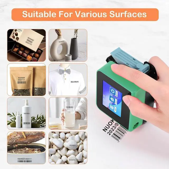Hand Printer for Any SurfaceThis pocket mobile handheld inkjet printer can print on paper, cardboard, wood, textile, leather, wall, cloth, stone, metal. The portable inkjet printer features a compact sliding design for better printing on curved, uneven or smooth surfaces such as glass, plastic, coffee mugs, ceramic pieces, eggs or other materials.