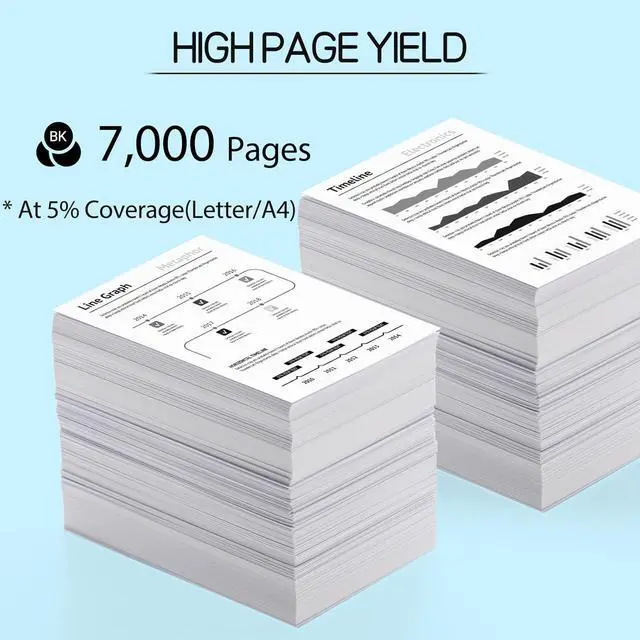 One black cartridge can print up to 7,000 pages. (Under condition of 5% coverage in A4 paper).