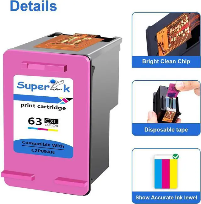 SuperInk Products Ink Cartridge is optimally designed to replace your HP 63 63XL F6U64A black and F6U63A tri-color cartridge and provide excellent printing performance.