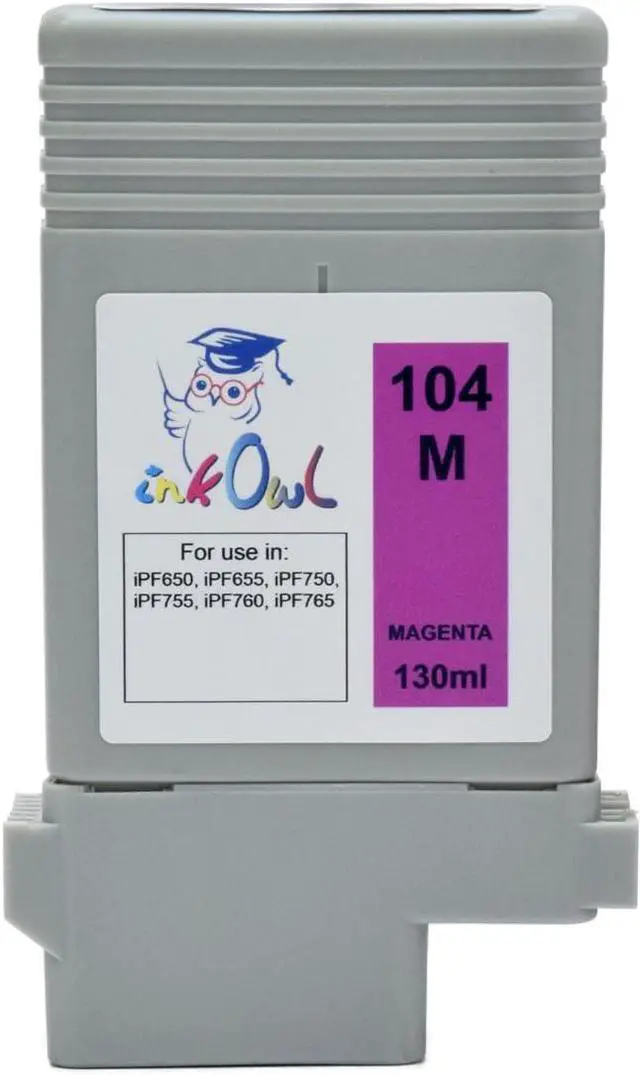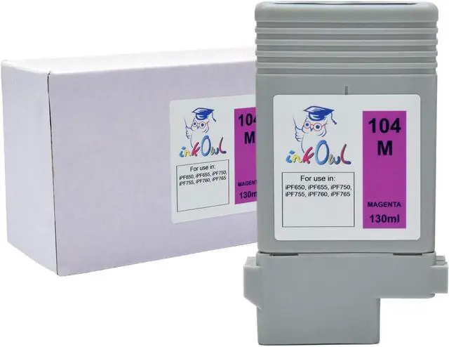 InkOwl Compatible Ink Cartridge Replacement for Canon PFI-104M (130ml, Magenta) - iPF650, iPF655, iPF750, iPF755, iPF760, iPF765 Printers