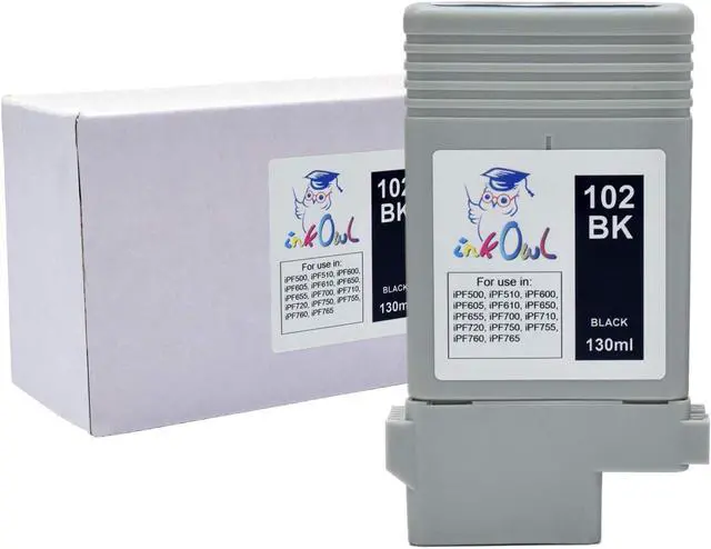 Compatible cartridge filled with 130ml of Ink Owl dye-based black ink for PFI-102.