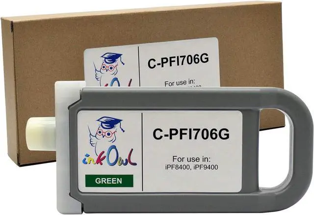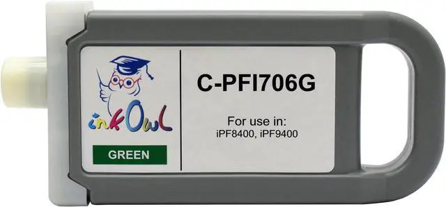 Compatible cartridge filled with 700ml of Ink Owl pigment-based green ink.