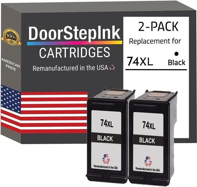Package Contents: 2 Black DoorStepInk remanufactured in the USA Ink Cartridge Replacement for HP 74XL
