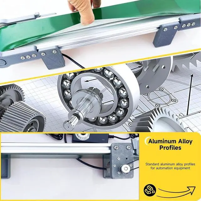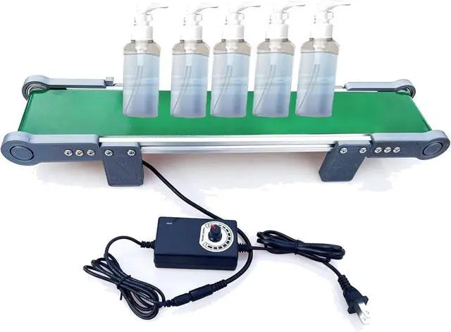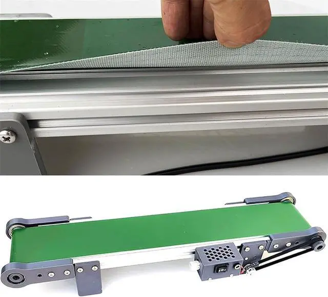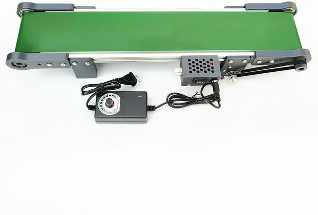 The Electric Desktop Conveyor Belt, a versatile and efficient tool for your workspace. This conveyor belt is perfect for moving small items or materials smoothly and efficiently. It features a motor with a DC 12V voltage, allowing for adjustable speeds ranging from 0 to 116 RPM.Specification:Name: Mini Metal Desktop ConveyorInput voltage: 100-240V; Output voltage: 12VTotal size: length and width about100*10cmConveyor belt width: 8cmHeight: 73mmMotor speed: 0- 116 RPMMaximum speed: 7.6cm/sSlowest speed: 1.8cm/sPackage Included:1 x Desktop Conveyor1 x Adjustable Power AdapterNote: - If you have any questions, please write to us and we will be happy to help you.