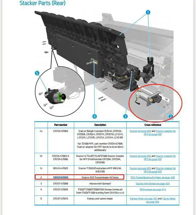 CR357-67043 Stacker OVD Transmission W/ Motor For HP T920 T930 T1500 T2500 3500