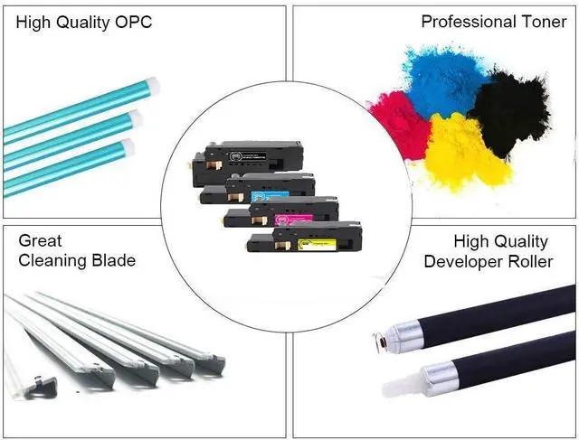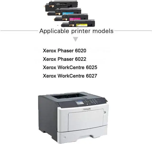 What's included: Compatible Xerox 6027 Toner Cartridge Replacement for xerox 6022 (2 Black, 1 Cyan, 1 Magenta, 1 Yellow, Total 4-pack). Easy to install and use, rival the original in clear and stable printing. Non-OEM.