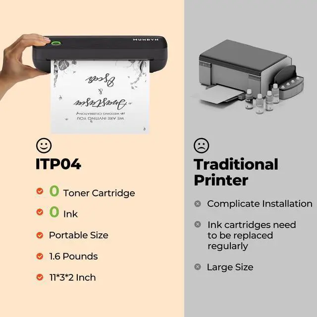 [Inkless Printer] Using MUNBYN ITP04 thermal printing technology, this innovative printer requires no ink, toner or ribbon. Say goodbye to expensive replacements and relentless back and forth to the store. It is important to note that thermal printers only support thermal paper, not plain paper, and they print in black and white. Experience the ultimate in convenience and savings with our inkless printer