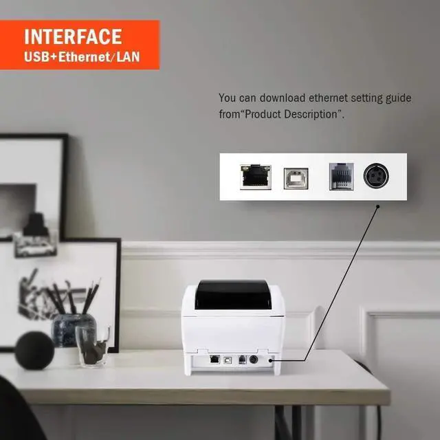 [Cost and Space Saving]: Saving money and Eco-Friendly, with thermal printing tech, no need ink or cartridges. This thermal printer is small footprint and support wall hanging with 2 wall holes, saving your precious space