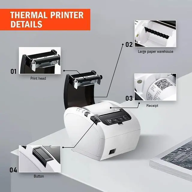 [High Speed Printing with Auto Cutter]: Receipt printer work with high efficiency with auto cutter and the fastest printing speed--230mm/sec. Long-lasting auto-cutter up to 1.5million cuts. Fast printing of text and images at 80mm thermal paper.