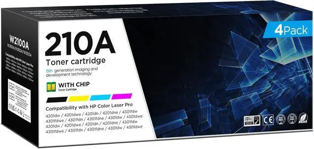 • High Compatibility Compatible with HP 210A/210X toner cartridge replacement for HP W2100A/W2100A W2101A W2102A W2103A for Color Laserjet Pro MFP 4301fdw 4301fdn Pro 4201dw 4201dn Wireless Printers.