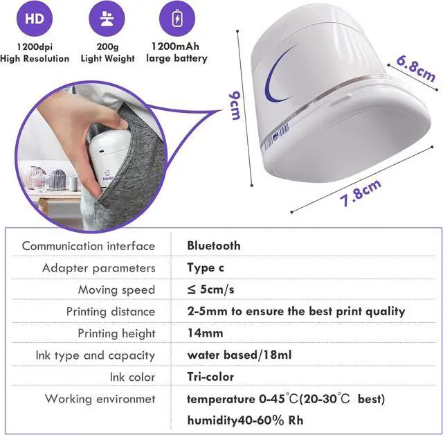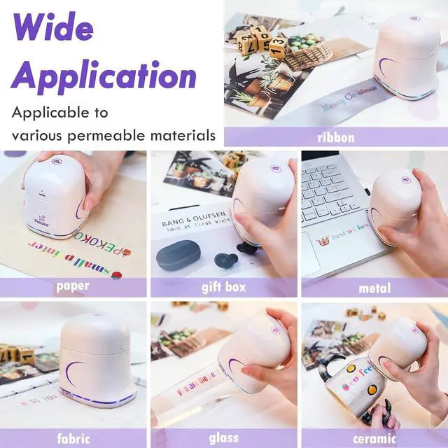 PEKOKO Instant Handheld Printer Portable Mini Inkjet Printer Color Barcode Printer 1200dpi Wireless