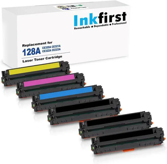 This Value Pack contains a total of 6 Inkfirst Remanufactured Toner Cartridges replacement for HP 128A CE320A CE321A CE323A CE322A. It includes: 3 x Black, 1 x Cyan, 1 x Magenta, 1 x Yellow.