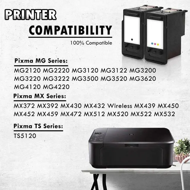 Compatible Canon Printer Models: PIXMA MG2120 MG2220, MG3120, MG3122, MG3200 Series, MG3220, MG3222, MG3500 Series, MG3520, MG3620, MG4120, MG4220, MX372, MX392, MX430 Series, MX432 Wireless, MX439, MX450 Series, MX452, MX459, MX472, MX512, MX520 Series, MX522, MX532, TS5120