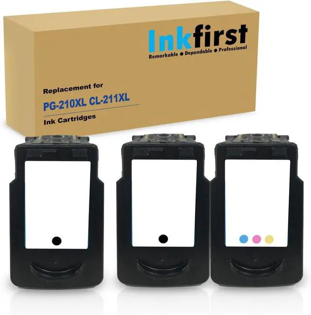 This Value Pack contains a total of 3 Inkfirst Remanufactured Ink Cartridges replacement for Canon PG-210XL CL-211XL. It includes: 2 x Black, 1 x Color.