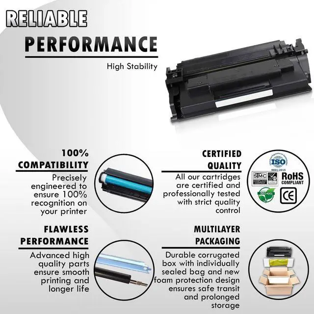 These compatible toner cartridges replacement for HP CF258X 58X are manufactured in ISO9001 certified factories.