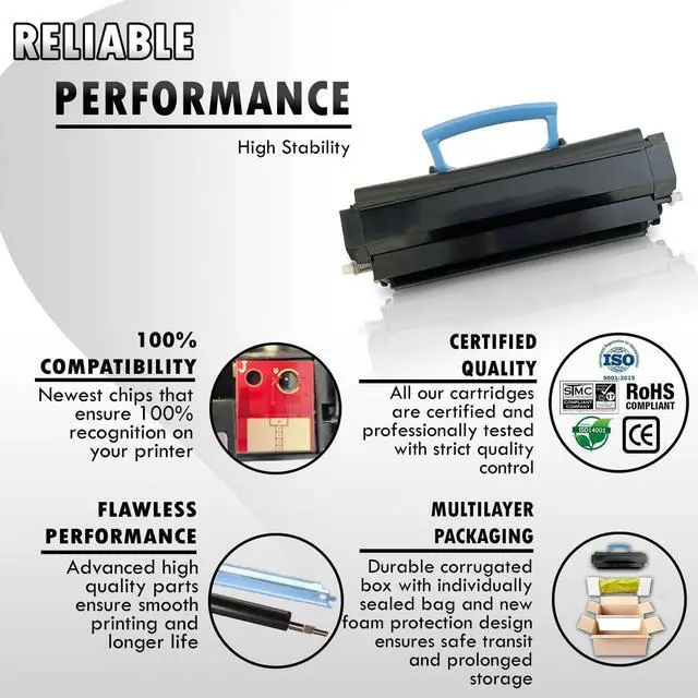 These Inkfirst Compatible Toner Cartridge Replacement for Lexmark E230 24035SA / 34035HA are manufactured in Iso9001 certified factories. This ensures that our Inkfirst Compatible Toner Cartridge Replacement for Lexmark E230 24035SA / 34035HA will provide the high printing quality. These Inkfirst Compatible Toner Cartridge Replacement for Lexmark E230 24035SA / 34035HA are warrantied with a 2 Year Guarantee Policy against manufacturing defects